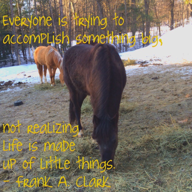 avril 3, 2014 Liseanne Roy Everyone is trying to accomplish something big, not realizing life is made up of little things. -Frank A. Clark Partagez ceci : Cliquer pour imprimer(ouvre dans une nouvelle fenêtre) Imprimer Cliquez pour envoyer par courriel à un ami(ouvre dans une nouvelle fenêtre) Courriel J'aime chargement…