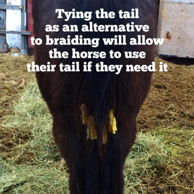 Another thing that stops a horse from being a horse is tail braiding. Humans love horses with long flowing tails, so they braid them up a put them in bags so they grow and don’t get muddy.