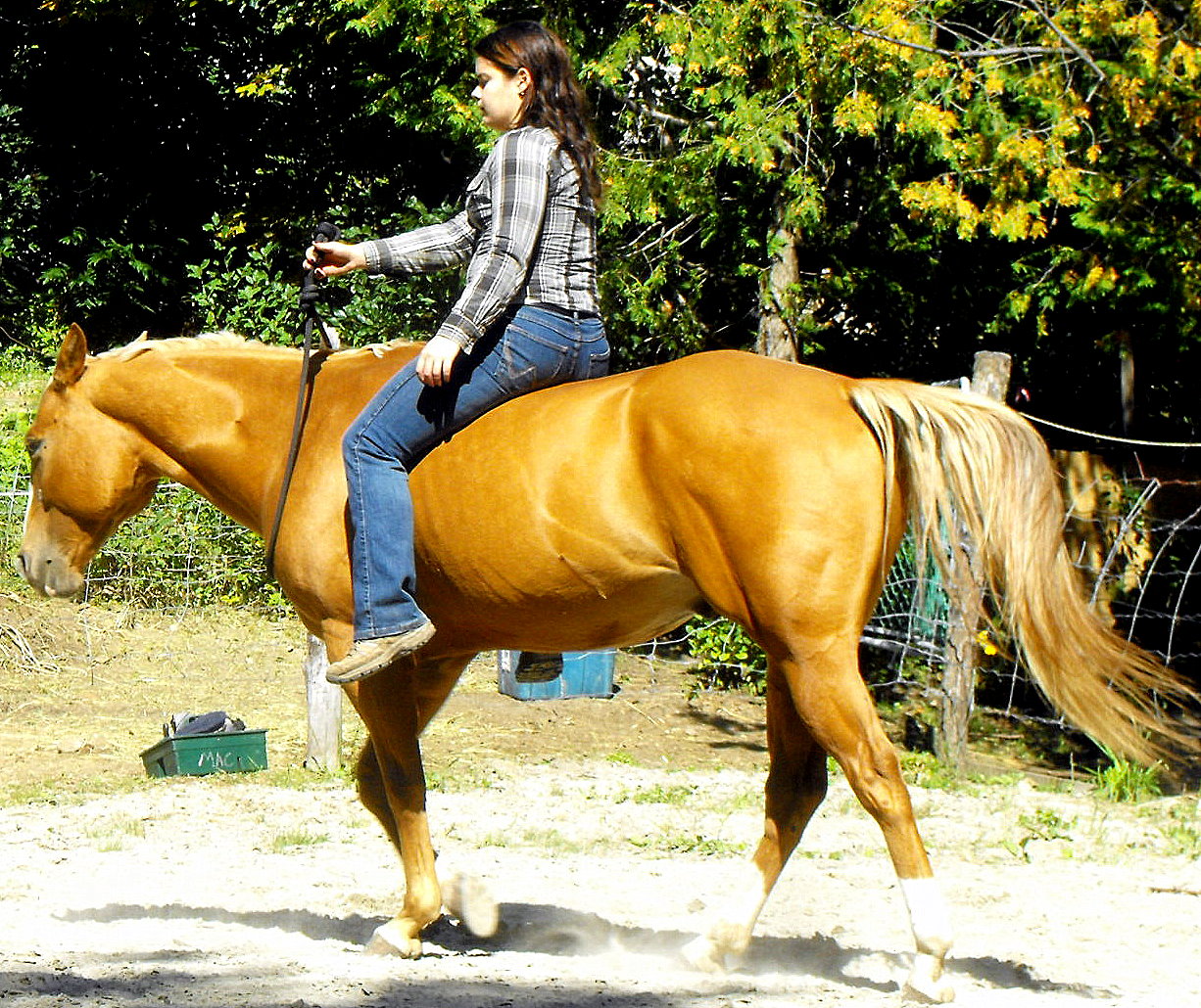 The ability to ride bareback and bridle-less with my horse Mac. Pictured we are going slow, but I was able to lope, stop, perform small pattern and circles, and all the basic maneuvers (turn on the haunches and forehand and side-pass). Every time I look at this picture I have a mixture of remorse (for not continuing with what I had accomplished) and excitement (to gain that level of training all over again!)