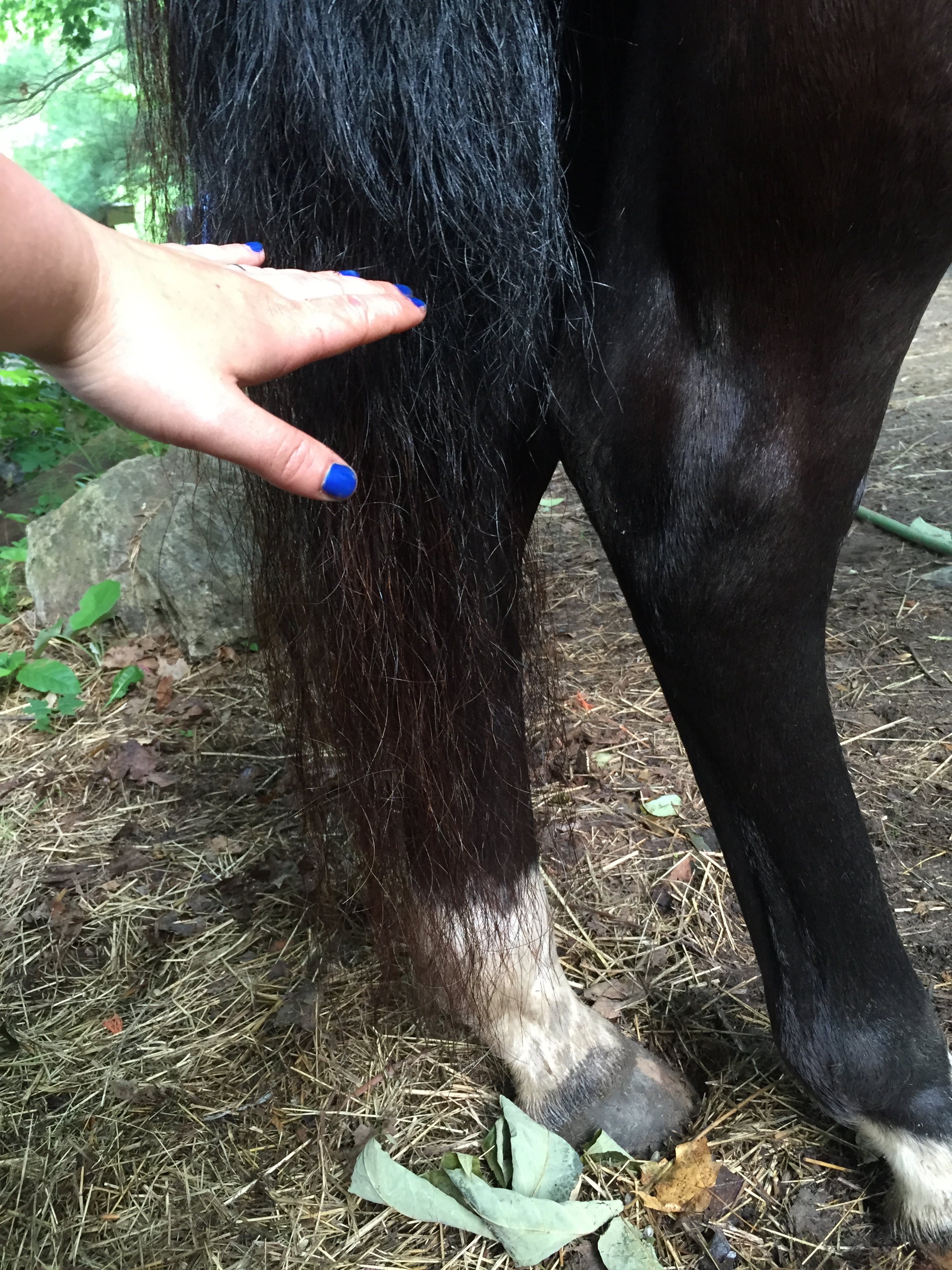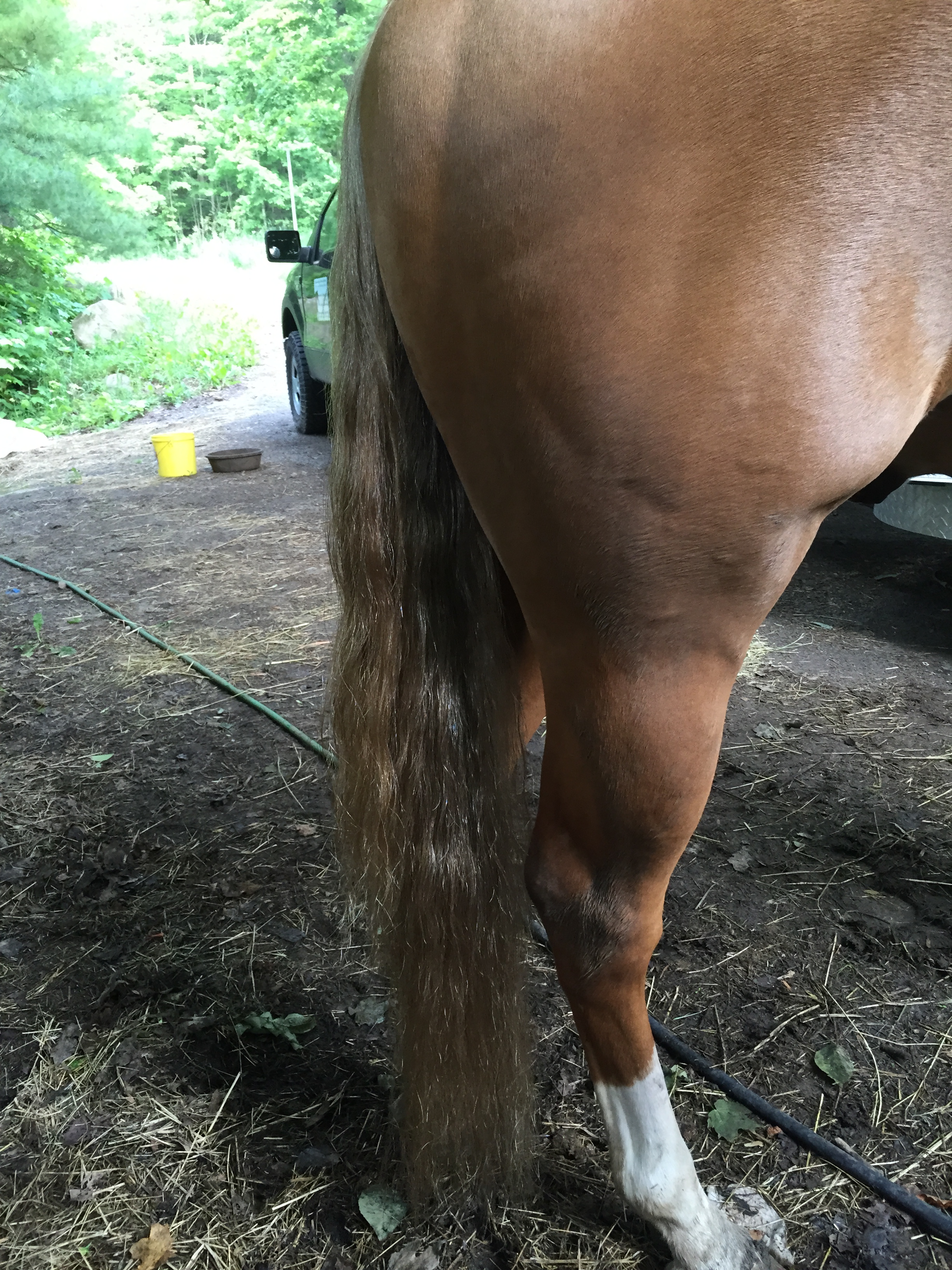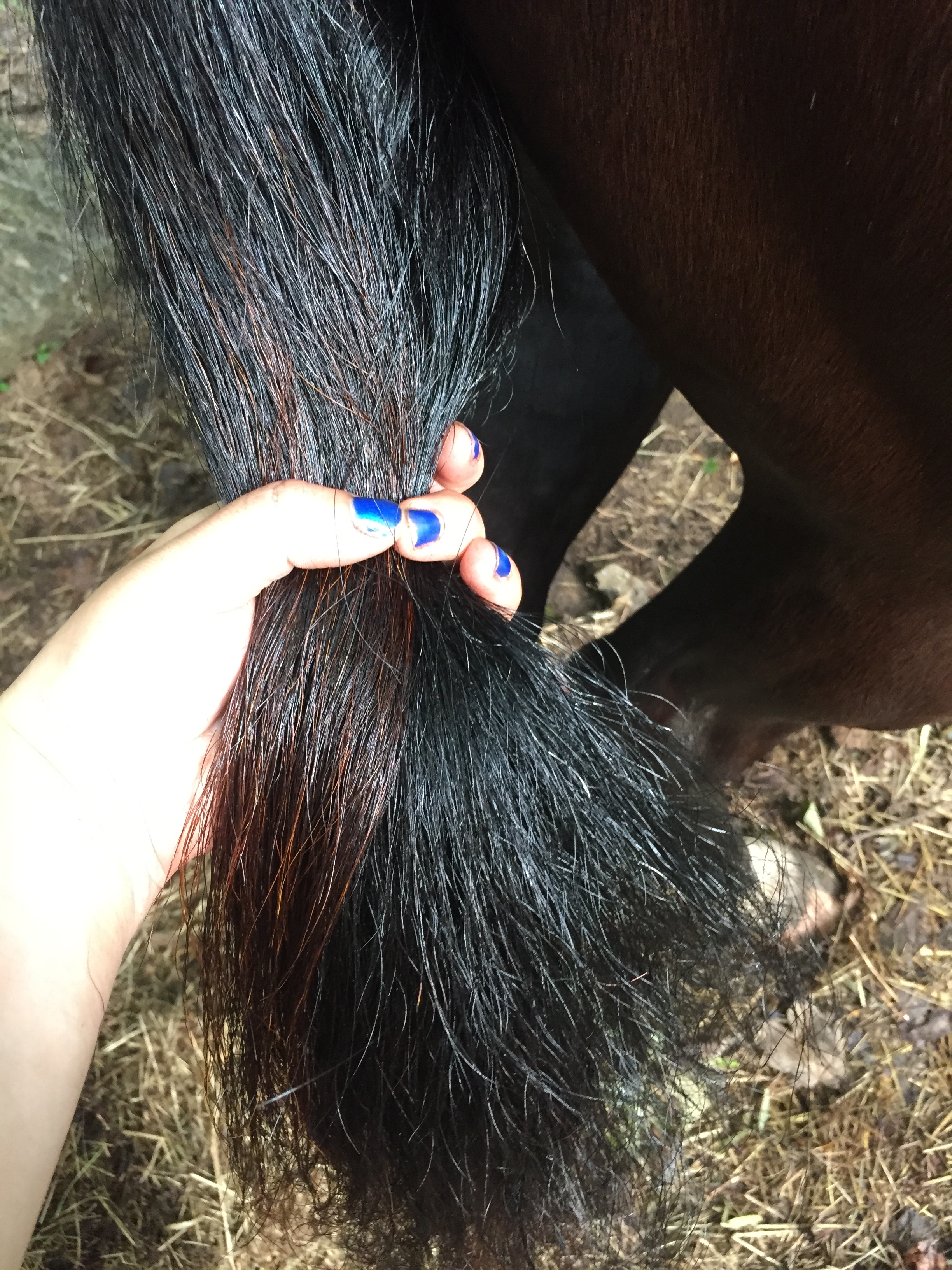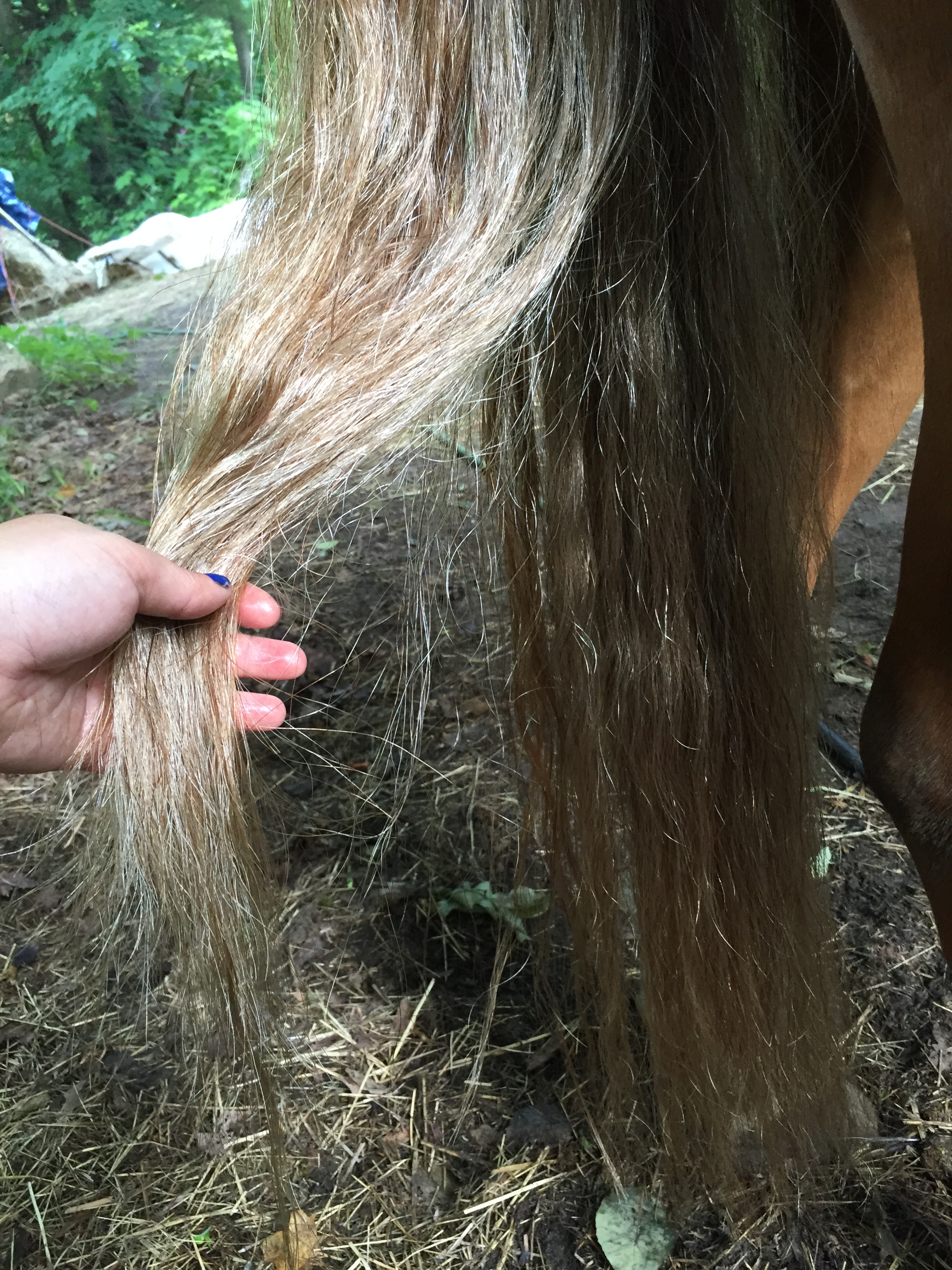 I have been working on Maggie’s (dark bay) tail for less time than Mac’s (Palomino), so you can see the difference in the results so far. But they are still significant.
