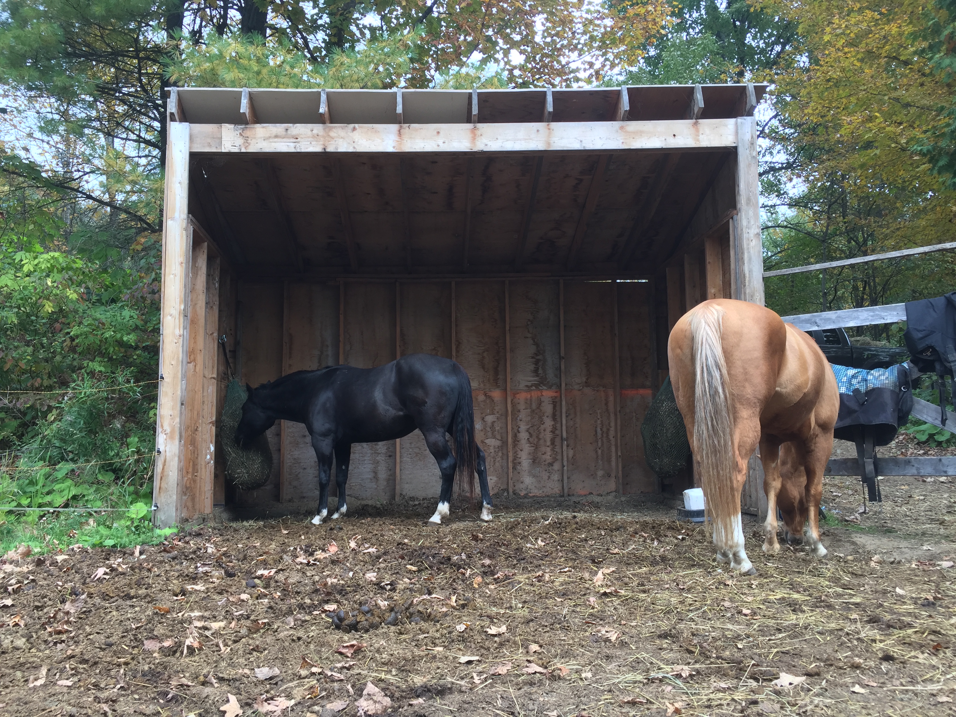 Mac is a 10 year old gelding, and a hard keeper, meaning he needs a larger amount of feed to maintain a normal body weight than the average horse. Maggie is a 5 year old mare, who is a fairly easy keeper, she needs a lot less feed than Mac to maintain a proper weight. So you would think that they wouldn’t be able to live together well, as Maggie could end up getting more hay or stealing Mac’s feed and not leaving enough for him. But this is not the case. They work well together because Mac is very dominant and Maggie is very submissive, so Mac is always the one to get the last of the hay, and never loses any of his feed to Maggie. Another thing that makes them a good match is Maggie eats very slowly, and Mac is more of a gobbler. So the horse that needs more, gets more, and vice versa.