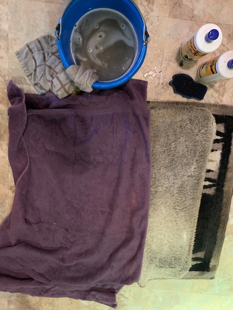 - À noter, peu importe la façon dont vous les nettoyez, si vous obtenez un tapis en laine mérinos (du type moelleux), ils obtiendront toujours une sorte de décoloration au courant des années. Si cela vous dérange, je suggère plutôt un tapis en feutre, ils sont généralement gris foncé ou noir et ne montrent pas autant la saleté. Le tapis illustré a environ 4 ans (utilisé 4 à 5 fois par semaine la plupart du temps), mais une fois nettoyé avec le processus, il est doux et sans odeur, bien qu’il soit encore légèrement décoloré.