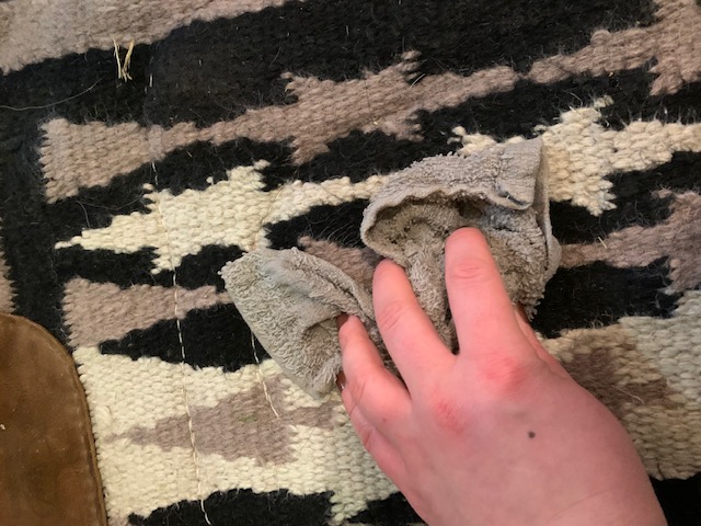 Pour rincer le tapis, vous répéterez le processus de lavage ci-dessus, mais en utilisant de l’eau claire, en rinçant les chiffons au fur et à mesure pour éliminer tout reste de shampooing.